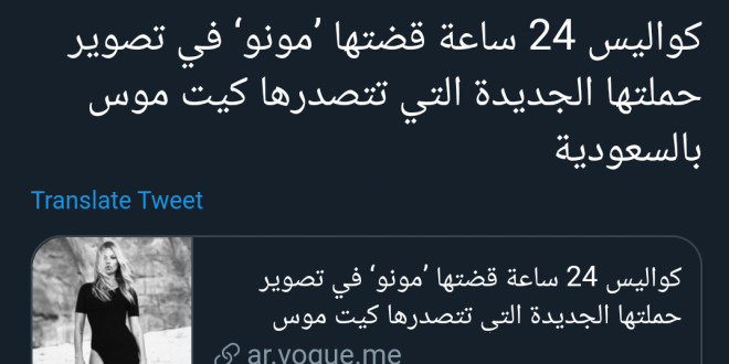مجلة "فوغ أرابيا" النسخة العربية، والموجودة في دبي، وتتخذ من الولايات المتحدة مقرًا رئيسيا لها، نظمت جلسة تصوير أطلق عليها اسم "24 ساعة في العلا" لمشاهير مثل كيت موس، مارياكارلا بوسكونو، وكانديس سوانبويل، وجوردان دون، وأمبير فاليتا، وشياو وين، وأليك ويك.