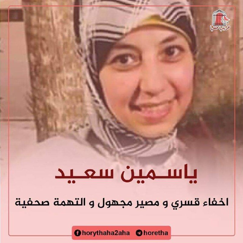 أيضا نددت حملة حريتها حقها باستمرار جريمة إخفاء الصحفية ياسمين سعيد، وذلك لليوم الثامن منذ اعتقالها يوم الأحد الماضي 5 يوليو، من منزلها بمحرم بك بالإسكندرية، دون عرضها علي أي جهة تحقيق حتى الآن.