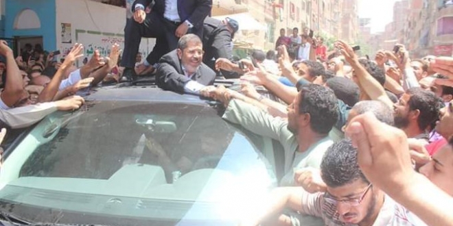والرئيس مرسى، من مواليد 8 أغسطس 1951، واسمه الكامل محمد محمد مرسي عيسى العياط، هو الرئيس الخامس لجمهورية مصر العربية، والأول بعد ثورة 25 يناير وهو أول رئيس مدني منتخب للبلاد. أُعلن فوزه في 24 يونيو 2012 بنسبة 51.73 % من أصوات الناخبين المشاركين. بدأت فترته الرئاسية مع الإعلان في 24 يونيو 2012 عن فوزه في انتخابات الرئاسة المصرية 2012، وتولّى مهام منصبه في 30 يونيو 2012 بعد أدائه اليمين الدستورية.