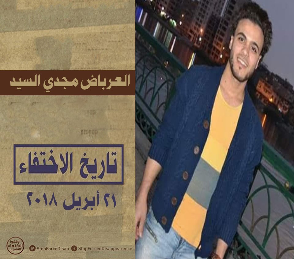 في دمياط طالبت أسرة الشاب العرباض مجدي السيد سالم محمد، 26 عامًا، نجار من أبناء قرية السواحل – مركز كفر البطيخ، بالكشف عن مكان احتجازه القسري؛ حيث تم اختطافه من قبل قوات أمن الانقلاب، أثناء ذهابه لزيارة أحد أقاربه بمدينة دمياط الجديدة يوم 24 أبريل 2018واقتادته لجهة مجهولة حتى الآن.