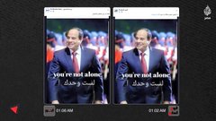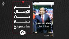 وظهر هاشتاج لتأييد المنقلب عبد الفتاح السيسي بعنوان #لست_وحدك في توقيت متزامن مع آخر دشنه نشطاء تحت عنوان #يسقط_يسقط_حكم_العسكر، إلا أن ذباب المخابرات تناسى أن الكلمات واحدة وأنه تم إرساله من جهاز سامسونج.