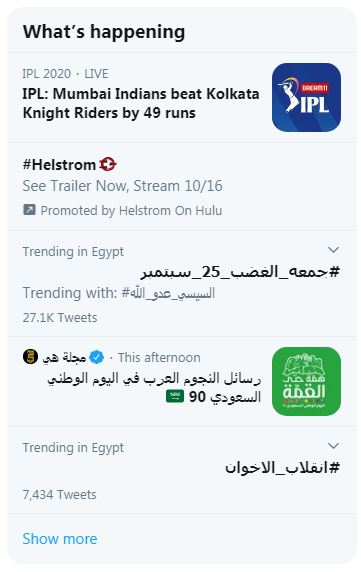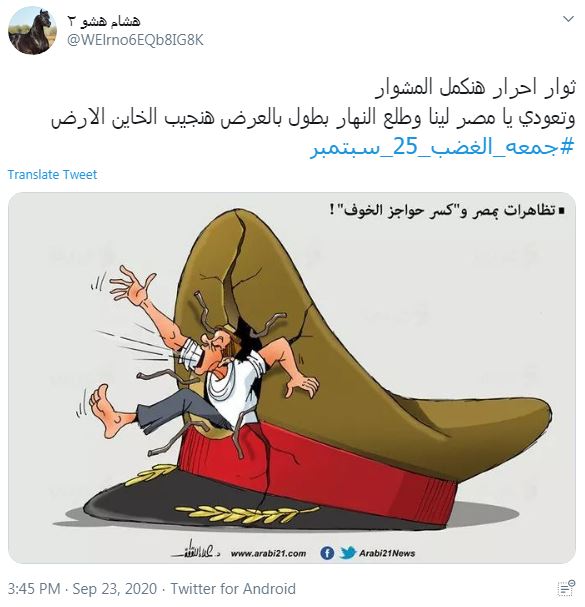 تصدر هاشتاج #جمعة_الغضب_25سبتمبر قائمة الأعلى تداولا على موقع "تويتر" في  مصر وسط استمرار المظاهرات في مناطق عدة لليوم الرابع.