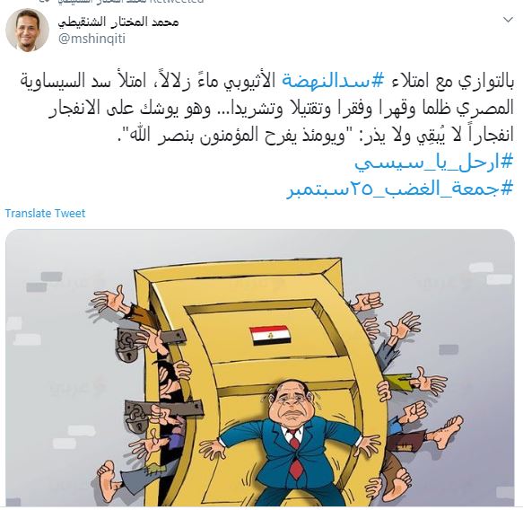 وقال حساب "محمد على | Mohamed Ali": "ان شاء الله عايزين كل محافظات والقاهره تنزل ونعمل مليونيه الرحيل السيسي".