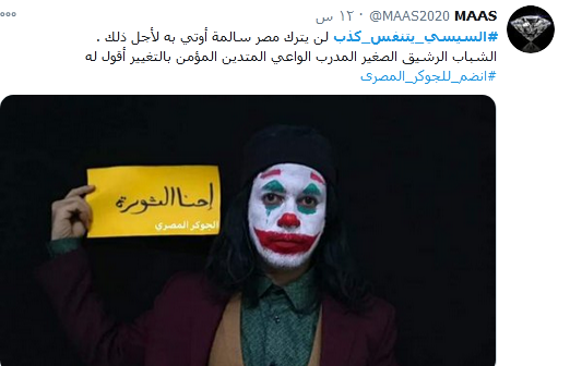 وعلق ماس قائلا "لن يترك مصر سالمة أوتي به لأجل ذلك . الشباب الرشيق الصغير المدرب الواعي المتدين المؤمن بالتغيير أقول له انضم للجوكر المصري.