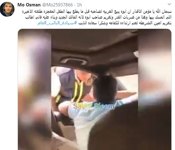 أما حساب "@FFF_1616pPp" فرغم ما حدث قالت "أتمنى من النائب العام .. الاستئناف على قرار النيابة بتسليم الطفل إلى والده القاضي.. ظهور فيديو جديد .. يهين فيه رجل مرور آخر.. ويحب محاسبة الأب ومصادرة السيارة وحبسه في مؤسسة أحداث ليكون عبرة لكل من يهين رجال الشرطة.. لكن أنا متأكدة إن القاضي .. تم وضع علامة إكس عليه خلاص" الطريف أنها أشارت في تغريدتها إلى حساب المنقلب السيسي!!
