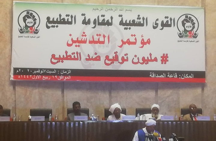 من جانبه قال دفع الله تاج السر، ممثل جبهة "القوى الشعبية لمقاومة التطبيع"، خلال المؤتمر، إن الكيان الصهيوني جاء لسرقة مواردنا ولا مصالح لنا في التطبيع معه، داعيا كل القوى السياسية والتكتلات في البلاد إلى التوقيع على ميثاق رفض التطبيع. معلنًا عن إطلاق حملة شعبية لجمع مليون توقيع رفضا للتطبيع بين السودان والعدو الصهيوني.