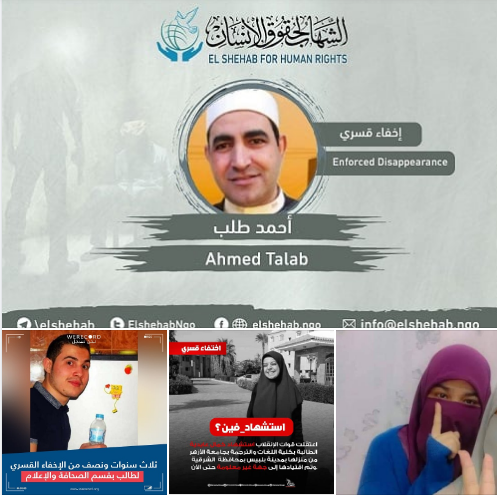 وثق مركز الشهاب لحقوق الانسان شكوى بإخفاء المواطن أحمد طلب وابنيه: يوسف وعمر، بعد اعتقالهم من منزلهم بناهيا محافظة الجيزة، يوم الاثنين 9 نوفمبر 2020 ، ولم يستدل على مكان احتجازهم إلى الآن.