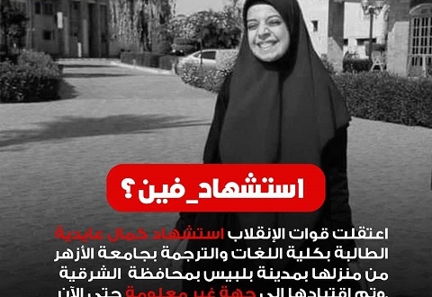 ونفت أسرة الطالبة استشهاد كمال عايدية أنباء ظهورها بنيابة الانقلاب العليا، وأكدت أنها ما زالت قيد الإخفاء القسري منذ اعتقالها الاثنين الماضي 9 نوفمبر الجاري من منزلهم بمدينة بلبيس محافظة الشرقية ضمن جرائم نظام السيسي ضد الإنسانية.