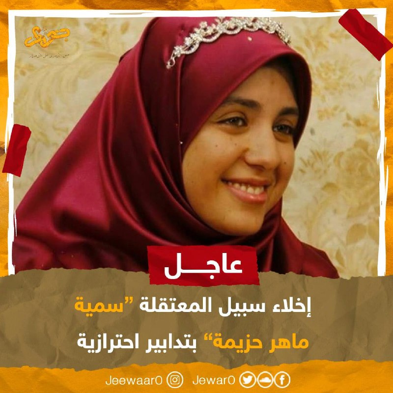 حصلت،اليوم، المعتقلة سمية ماهر حزيمة على قرار بإخلاء سبيلها بتدابير احترازية بعد اعتقال زاد عن 3 سنوات تعرضت خلالها لصنوف من الانتهاكات والجرائم التي مارستها ضدها سلطات أمن الانقلاب سواء في الإخفاء القسري أو عقب الحبس الاحتياطي.