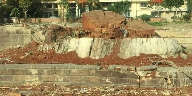 حزن كبير يسيطر على رواد مواقع التواصل الاجتماعى؛ بعدما أقدم نظام الانقلاب العسكري على جريمة جديدة باقتلاع عشرات الأشجار المعمرة بدعوى تطوير "كورنيش العجوزة" بمحافظة الجيزة. وبحسب نشطاء فإن من بين هذه الأشجار المعمرة شجرة اختصها الأديب الراحل نجيب محفوظ في روايته "ثرثرة فوق النيل"، التي تحولت إلى فيلم سينمائي فيما بعد.