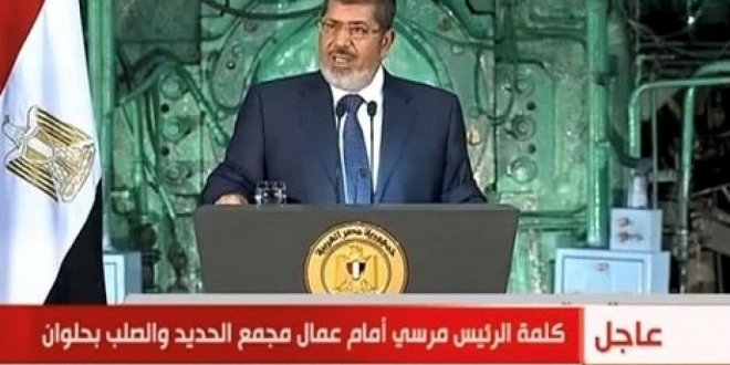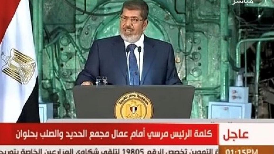 ومن المصنع الذي يعد إحدى قلاع الصناعة المصرية الكبرى خاطب الرئيس مرسي معاهدا: "أعاهدكم ألا يُشَرد في عهدي عامل".