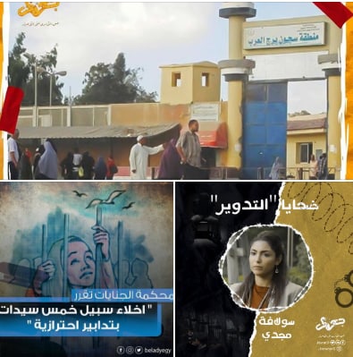 فيما قررت محكمة جنايات القاهرة والمنعقدة بغرفة المشورة بمحكمة طره بجلسة 17 يناير 2021 إخلاء سبيل 5 سيدات بتدابير احترازية وفقا لما ذكره "مركز بلادي لحقوق الإنسان" وهن: ناهد محمود محمود حسين، على ذمة القضية رقم 674 لسنة 2019، نيرمين حسين فتحي، شيماء سامي زكي، نجلاء فتحي فؤاد، على ذمة القضية 535 لسنة 2020. ابتسام مصباح عيد، على ذمة القضية 750 لسنة 2019.