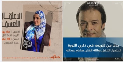 وأوضح أن المعتقلين ليس لهم أي نشاط سياسي ولكن اعتقالهم جاء في إطار انتقامي من قبل جهاز الأمن في مصر ضد أقارب المعارضين المصريين في الخارج ومنهم الفنان هشام عبدالله.