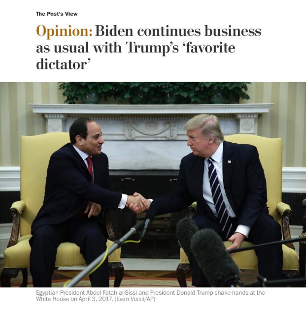 وأشار المراقبون إلى صفقة ال200 مليون دولار التي اشترى بها السيسي سلاحا أميركيا، وتغير موقف بايدن بصفقة صواريخ حماية طائراته الرئاسية. وقالت وزارة خارجيته "إنها تدعم دفاع مصر عن أمنها وأنها دولة حليف استراتيجي لنا".