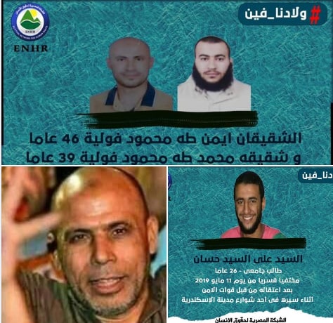 ووثقت الشبكة المصرية لحقوق الإنسان استمرار جرائم الإخفاء القسري، ودعت إلى توحيد الجهود من أجل وقف الجريمة والكشف عن مصير المختفين. ومن هؤلاء شقيقان من محافظة بورسعيد مضى عامان ونصف وهما يواجهان مصيرا مجهولا منذ اعتقالهما مساء يوم 18 اغسطس 2018 واقتيادهما إلى جهة مجهولة. وأوضحت أن قوات الانقلاب اعتقلت أيمن طه محمود فويلة، 46 عاما، وشقيقه "محمد"، 39 عاما، اثناء عودتهما من القاهرة بعد إيقافهما ضمن ركاب أتوبيس سوبر جيت عند كمين كارتة بورسعيد، ليقبض عليهما وتنقطع أخبارهما منذ ذلك التاريخ.