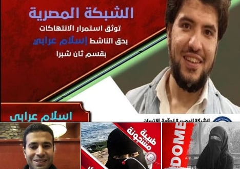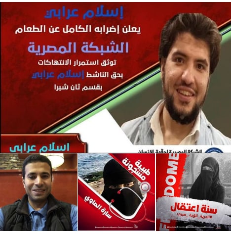 من جانبها، وثقت الشبكة المصرية لحقوق الإنسان استمرار الانتهاكات بحق الناشط إسلام محمد عبدالحميد عرابي الذي جرى إخفاؤه قسرا للمرة الثانية داخل قسم ثان شبرا الخيمة منذ 16/2/2021 بعد حصوله على إخلاء سبيل مباشرة؛ ما دفعه لإعلان إضرابه الكامل عن الطعام؛ احتجاجا على المعاملة المهينة التي يتلقاها، والتنكيل المتواصل به.
