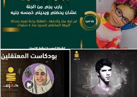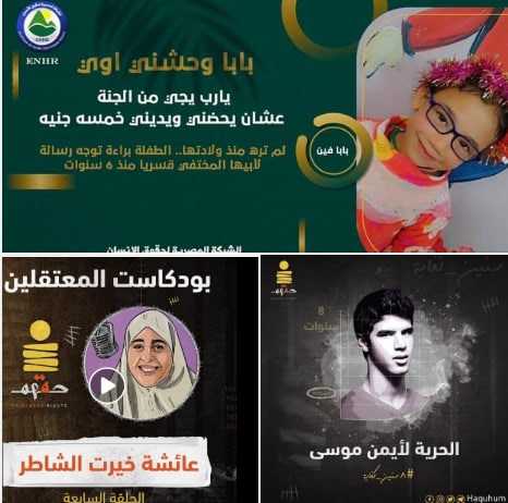 ونقلت الحملة رسالة طفلته الصغيرة التي لم تر والدها منذ ولادتها، وعبرت خلالها عن شوقها لأبيها الذي لم تتكحل عيناها برؤيته وقالت: “بابا وحشني أوي.. يارب ييجي من الجنة عشان يحضني ويديني خمسة جنيه”!