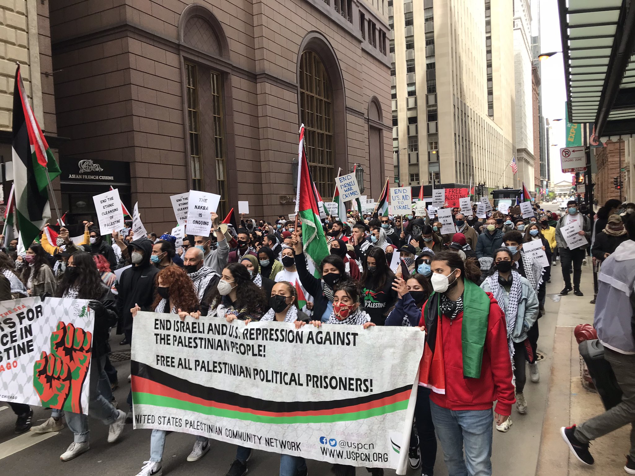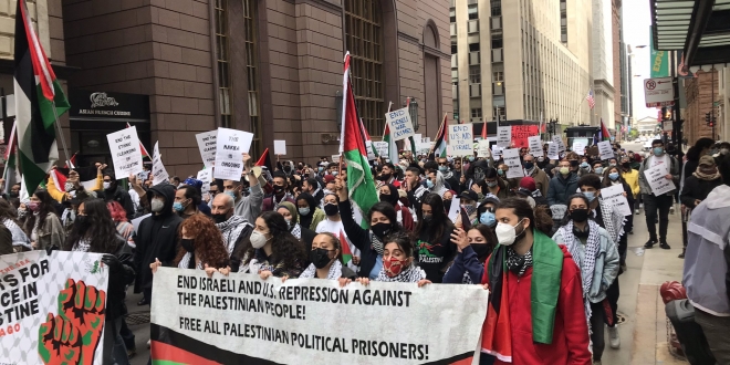 وتظاهر مئات العرب والفلسطينيين بشوارع مدينة شيكاغو الأمريكية تضامنا مع صمود المرابطين في المسجد الأقصى والمقدسيين المهددين بالتهجير القسري من منازلهم في حي الشيخ جراح شرقي القدس المحتلة.