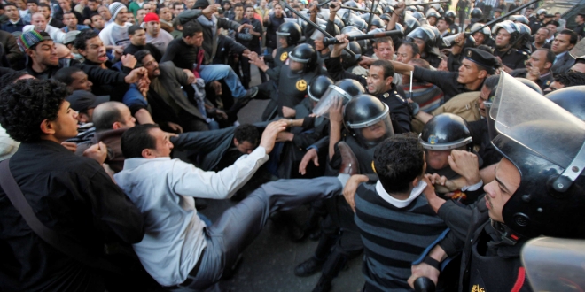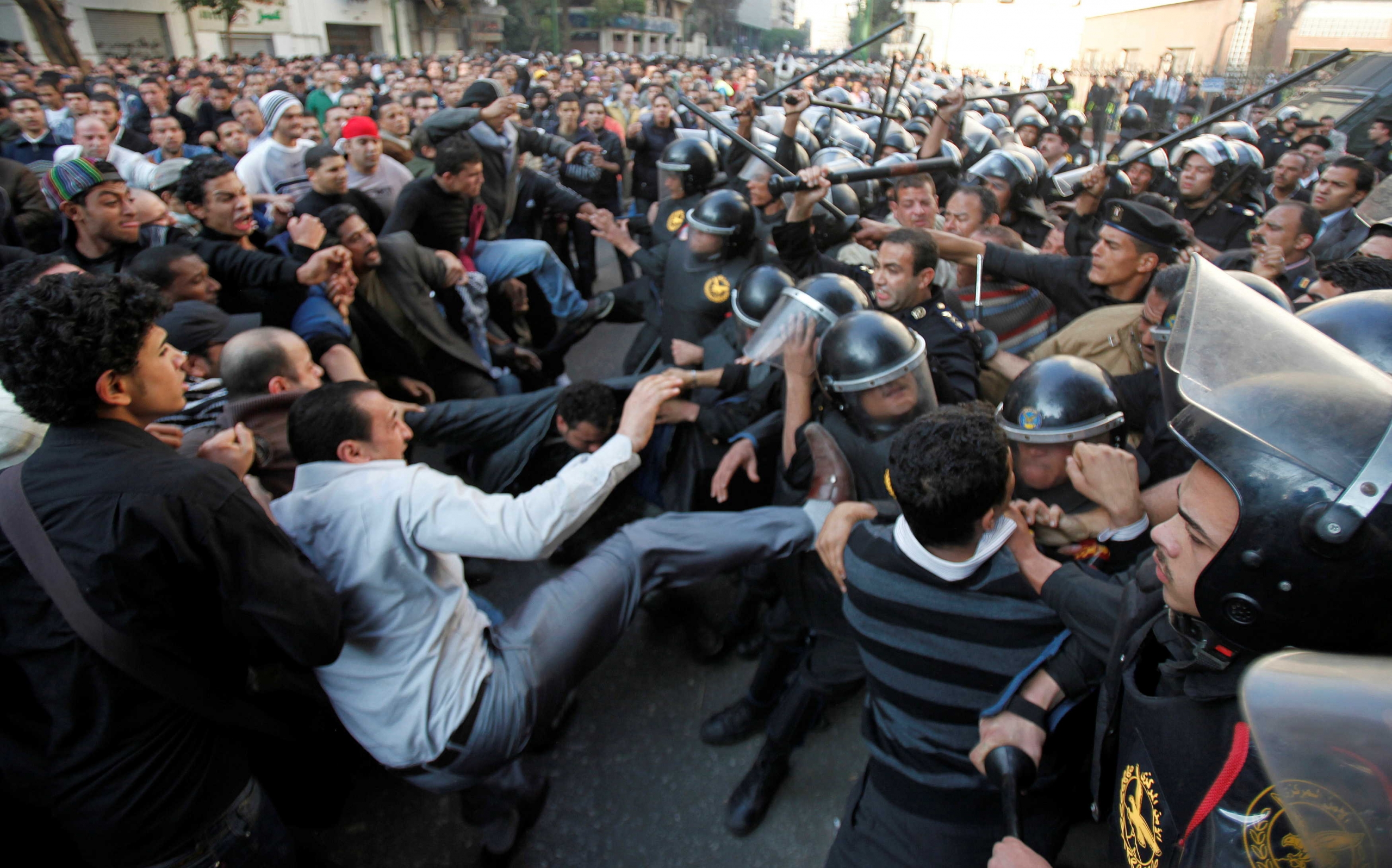 FILE PHOTO: Anti-government protesters clash with police in downtown Cairo, Egypt, January 25, 2011. REUTERS/Mohamed Abd El-Ghany/File Photo SEARCH "10TH ANNIVERSARY OF THE UPRISING IN EGYPT" FOR THE PHOTOS.