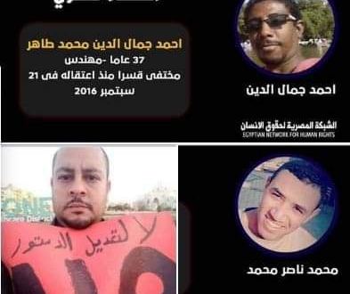 وثقت "الشبكة المصرية لحقوق الإنسان" استمرار جريمة إخفاء المهندس أحمد جمال الدين محمد طاهر، للعام الخامس على التوالي حيث تتواصل معاناة أسرته منذ أن علمت بخبر اعتقاله مساء يوم 21 سبتمبر 2016 من أحد الأكمنة بشوارع مدينة السادس من أكتوبر بمحافظة الجيزة واقتياده لجهة مجهولة حتى الآن.