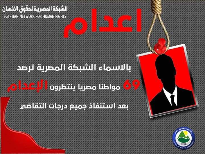 وأصدرت الشبكة تقريرا "رصدت فيه استنفاذ 69 مواطنا مصريا جميع درجات و إجراءات التقاضي، لتصبح أحكام الإعدام الصادرة بحقهم واجبة التنفيذ".