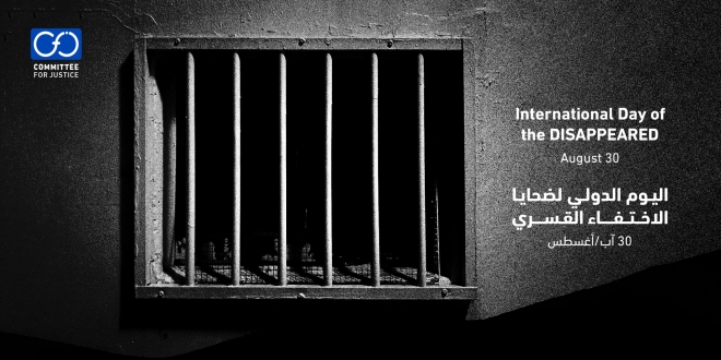 دعت منظمة "كوميتي فور جستس" للتدوين عن ضحايا الإخفاء القسري في مصر وذلك في اليوم العالمي لمساندة ضحايا الاختفاء القسري الذي يوافق غدا 30 أغسطس تحت هاشتاج #اوقفوا_الاختفاء_القسري.