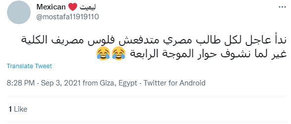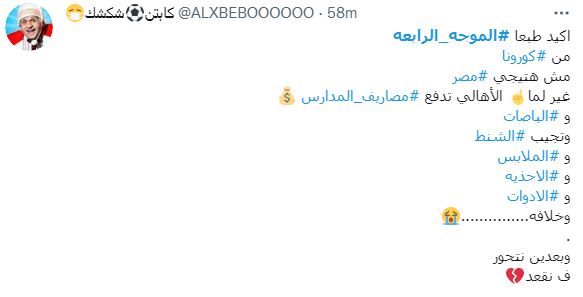 وقالت دعاء عبدالسلام @ElsalamDoaa "طبعا الموجة الرابعة مش هاتبتدي إلا لما يندفع مصاريف المدارس والباص والجامعات".