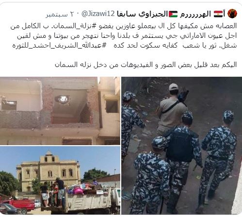 تصدر هاشتاج #ياأهل_السمان_المقاومة_هي_الحل مواقع التواصل الاجتماعي بعدما سارعت عصابة الانقلاب في هدم بيوت سكان منطقة نزلة السمان على رؤوس ساكنيها؛ لتكون المنطقة القريبة من أهرامات الجيزة الشهيرة، حلقة في سلسلة من الاستهداف بالهدم بدأت بانقلاب 2013 وستنتهي بحسب الناشطين بمقاومة عصابة الانقلاب التي تستهدف بيع المناطق الحيوية في تزامن مع تصريحات السيسي التي يعلن فيها مبادرات دعم الفقراء.