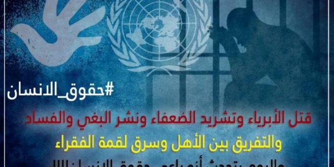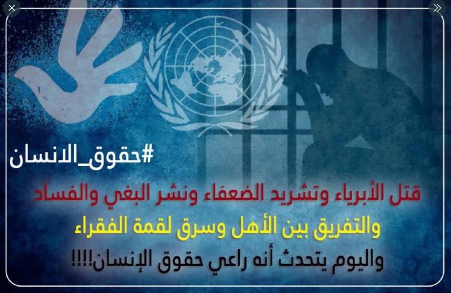 وكتب د.أحمد سلام @AhmedSa06576296 "السيسي بعد أن قتل الأبرياء وشرد الضعفاء ونشر البغي والفساد وفرق بين الأهل وسرق لقمة الفقراء اليوم يتحدث أنه راعي #حقوق_الإنسان ".