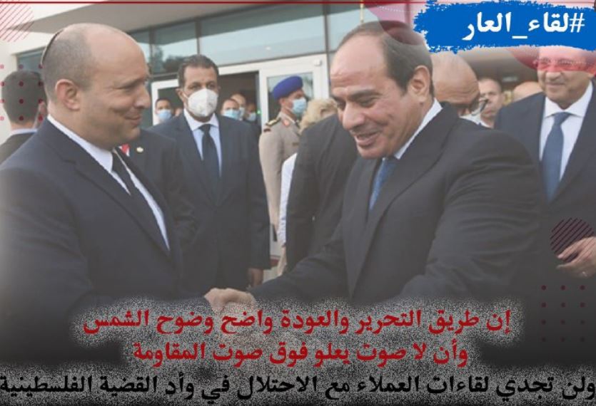 تيم المرابطون قال إن "لقاء العميل السيسي بالاحتلال في الذكرى الـ 28 لتوقيع اتفاقية أوسلو، خيانة جديدة تضاف لسجله القذرة ".