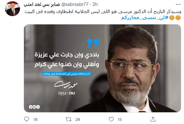 وذكرت حسابات عدة منذ إعلان وفاة طنطاوي أمس الثلاثاء مسؤوليته عن المجازر التي وقعت في عهده وعهد السيسي باعتباره الأب الروحي لقائد الانقلاب. وكتب "شبلنقة ابن طربوشة" @Rrreewwqqtt نماذج من "#لن_ننسى_مجازركم، اذكروا محاسن موتاكم".