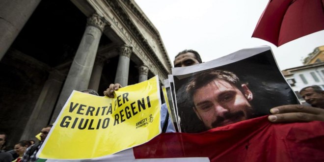 واختفى ريجيني الذي كان طالب دراسات عليا بجامعة كمبردج البريطانية، في القاهرة في يناير 2016 وعُثر على جثته بعد أسبوع تقريبا ليُظهر تشريحها تعذيبه قبل وفاته".