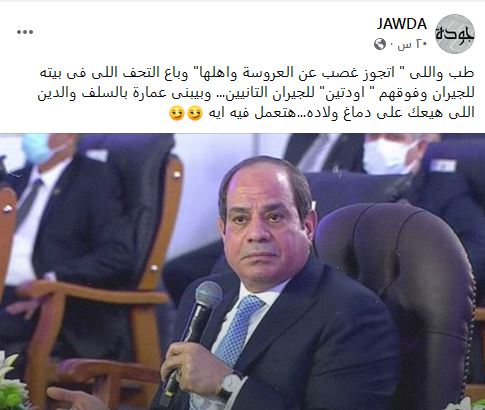 واعتبر مصري والدم فلسطيني @Raapaa4 أنه منذ الانقلاب والنهب متواصل ، ومن يوم ما حكمونا وهم بيسرقونا وينهبونا، ولو اتكلمنا يقتلونا ويسجنونا ويرهبونا ".
