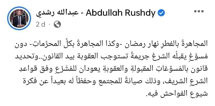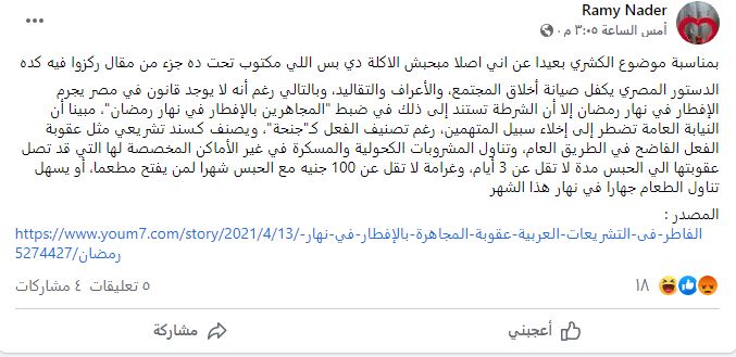 وقال حساب أحمد البكري معلقا ضمن موقع محلي "ده كفاية ، إن ربنا رافض أنك تصوم.. عاوز عقاب أكتر من كده".