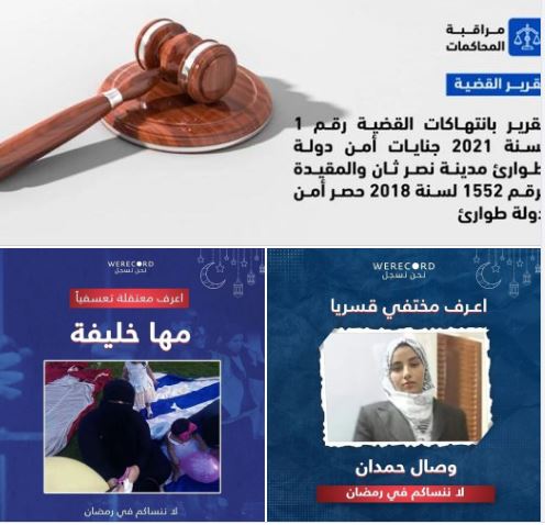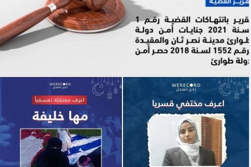 وقالت: "منذ اختطافها من قِبَل جهاز الأمن الوطني لا تعلم أسرتها عنها أي شيء ، ولم تظهر وانقطعت أخبارها تماما، وأشارت أنها أم لطفلين وكانت تعمل كموظفة بمكتب محاماة ، وطالبت بالكشف عن مكان احتجازها ورفع الظلم الواقع عليها وسرعة الإفراج عنها ".