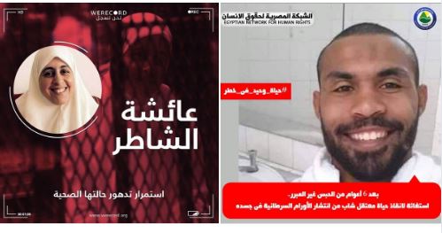 بدورها طالبت الشبكة المصرية لحقوق الإنسان الجميع بالتدخل لإنقاذ حياة عائشة الشاطر وإخلاء سبيلها، إضافة إلى زوجها محمد أبو هريرة بعد اعتقالهما منذ الأول من نوفمبر 2018 ومنعهما من الزيارات منذ ذلك التاريخ وحتى الآن، وحرمانهما من رؤية أطفالهم وذويهم.