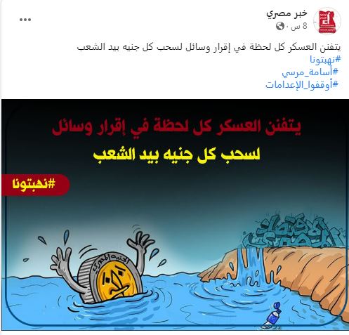 وعن مؤشرات ذلك "تزداد البطالة وتزيد الجرائم يوميا مع تدهور الأوضاع الاقتصادية بسبب هيمنة العسكر على كل القطاعات المدنية".