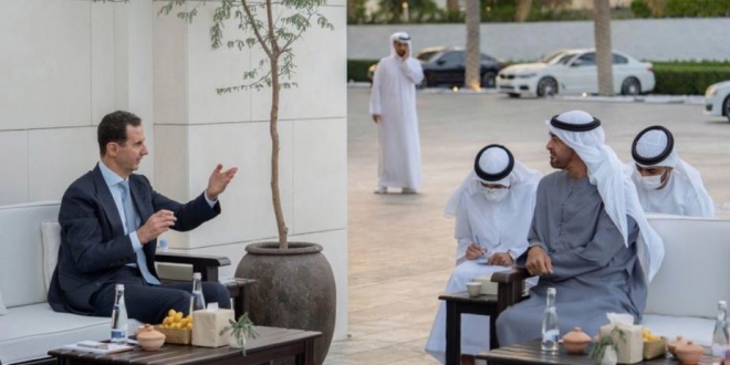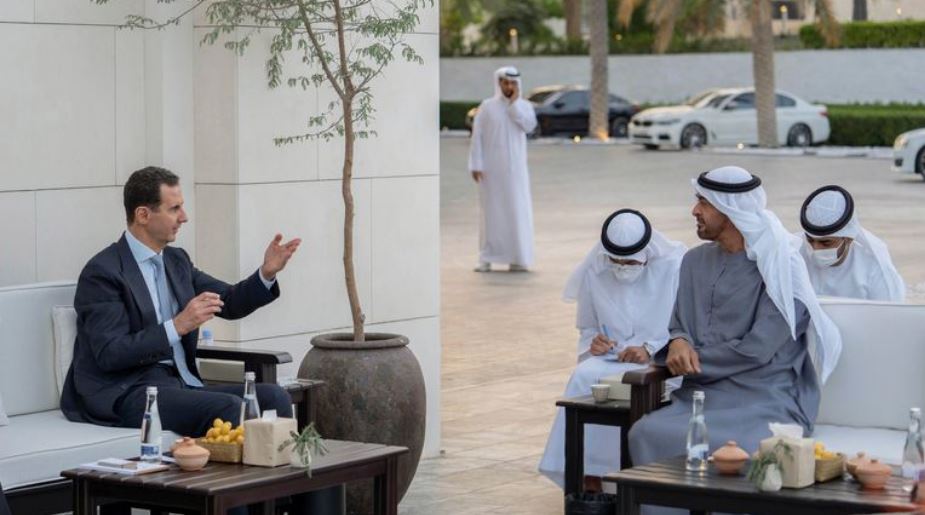 وزار رئيس النظام السوري، بشارالأسد، في 18 مارس 2022، العاصمة الإماراتية أبوظبي وهي الأولى له إلى دولة عربية منذ اندلاع الأزمة السورية عام 2011، حيث التقى خلالها الرئيس الحالي وولي عهد أبوظبي السابق، وسبق الزيارة عودة العلاقات الدبلوماسية والاقتصادية بين الإمارات وسوريا، حيث سبق أن بحث وزير الاقتصاد الإماراتي عبد الله بن طوق مع نظيره في النظام السوري محمد سامر الخليل إعادة تشكيل وتفعيل مجلس رجال الأعمال المشترك، كما زار عبد الله بن زايد وزير خارجية الإمارات دمشق.