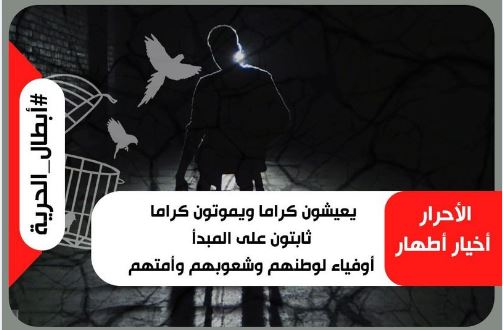 وأضاف حساب آخر "الحرية لا تُعطَى ولا توهب، وإنما تنتزع وتؤخذ غلابا، وبثبات الأحرار وصمودهم تستمر الراية سامقة عالية خفاقة".