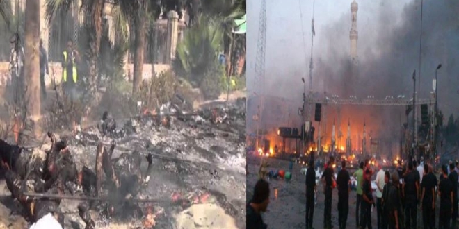 مسجد رابعة العدوية المحترق من الداخل.