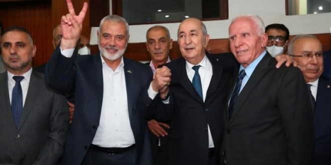 ووقعت الفصائل الفلسطينية مؤخرا على اتفاق “إعلان الجزائر” خلال مؤتمر لم الشمل من أجل الوحدة الفلسطينية برعاية رئيس الجمهورية عبد المجيد تبون، وجرت أشغال مؤتمر لم الشمل من أجل الوحدة الفلسطينية بقصر الأمم في نادي الصنوير بالعاصمة.