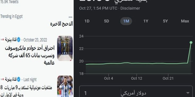 عقب قرارات البنك المركزي التي أصدرها صباح الخميس؛ تصدر هاشتاج #انزل_حرر_بلدك إلى جوار هاشتاجات (#الدولار) و(الجنيه المصري) و(الزنا الاقتصادي) بعد انهيار الجنيه إلى مستويات غير مسبوقة ووصل إلى نحو 25 جنيها في السوق السوداء متخطيا 23.14 للدولار الواحد في البنوك، وهو ما يعني كارثة محققة بعد أن حاول السيسي تسكين المصريين بقرارات مساء الأربعاء أبرزها رفع الحد الأدنى للأجور من 2700 إلى 3 آلاف جنيه، ورفع حد الإعفاء الضريبي من 24 ألفا إلى 30ألفا، وعدم زيادة أسعار الكهرباء حتى 30 يونيو، وعلاوة 300 جنيه لجميع الموظفين وأصحاب المعاشات.