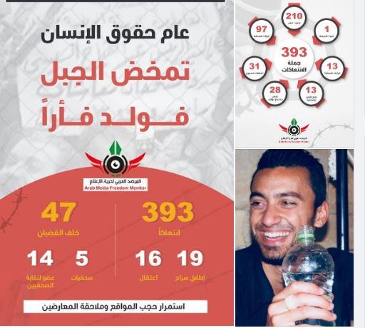 وقبل يومين قال "المرصد العربي لحرية الإعلام" إنه "رصد خلال العام المنقضي 2022 جملة من الانتهاكات المتنوعة بلغ عددها 393 انتهاكا مع استمرار حبس 47 إعلاميا وإعلامية، فيما تجاوز عدد المواقع المحجوبة ال 600 موقع، وبلغ عدد المحبوسين الجدد خلال العام 16 صحفيا وصحفية، فيما تم إطلاق سراح 19 آخرين.