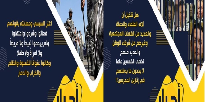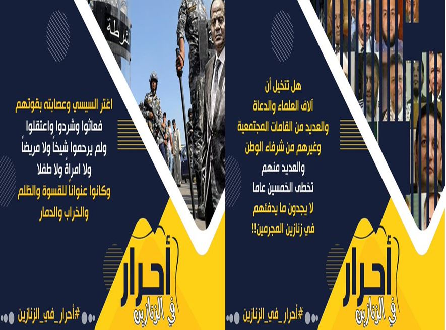 تفاعل ناشطون على هاشتاج #أحرار_في_الزنازين موجهين تحية إجلال وتقدير للأحرار في سجون عبدالفتاح السيسي، على صمودهم رغم تنكيل العسكر المستمر الذي يتعرضون له.