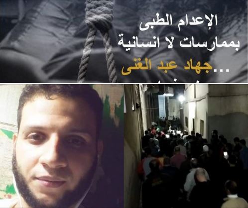 وبينت أن وفاة المعتقل جهاد عبد الغني سليم، 33 عاما، الذي لفظ أنفاسه الأخيرة في ديسمبر الماضي داخل المركز الطبي بمركز بدر للإصلاح والتأهيل بعد معاناته من سرطان الفك والفم، يعد نموذجا صارخا للاعدام الطبي بإجراءات لا إنسانية و للتنكيل الطبي بالمعتقلين داخل السجون ومقار الاحتجاز، والذي يصل درجة القتل البطيء.