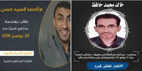 كما أكدت استمرار جرائم الإخفاء القسري الموثقه منذ سنوات لعدد من المختفين، بينهم المعتقل محمد عبداللطيف الذي أتم ثلاثة أعوام من الإخفاء القسري ، حيث تم اعتقاله من مطار القاهرة يوم 27 يناير 2020 بعد قدومه من السودان على متن الرحلة رقم 854 و المعتقل أحمد محمد داوود الذي أتم 3 سنوات و3 شهور مختف قسريا، حيث تم اعتقاله بتاريخ 20 نوفمبر 2019.