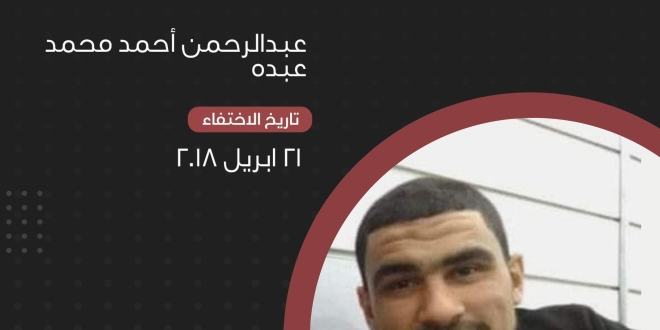 تواصل سلطات الانقلاب جريمة الإخفاء القسري للشاب عبدالرحمن أحمد محمد عبده، من “كفر البطيخ” بدمياط، منذ اعتقاله بتاريخ 21 إبريل 2018 برفقة أحد أصدقائه من أحد شوارع دمياط، واقتياده لجهة مجهولة حتى الآن دون ذكر الأسباب، رغم مطالبات أسرته بالكشف عن مصيره ورفع الظلم الواقع عليه.