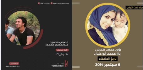 كما رصدت منصة أحياء تحت الأرض المعنية بالحديث عن ضحايا الاختفاء القسري تواصل الجريمة ذاتها ل ” رؤى محمد هجرس ” تبلغ من العمر ٣١ سنة وابنتها الرضيعة “يارا محمد أبو عليان ” من غزة بفلسطين منذ 6 سبتمبر 2014 .