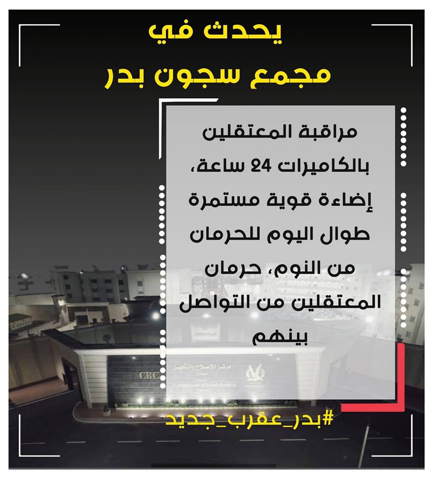 ومؤخرا أعربت 19 منظمة حقوقية في بيان مشترك عن قلقها الشديد من الانتهاكات الجسيمة التي ترتكبها سلطات النظام الانقلابي في مصر، داخل "مركز الإصلاح والتأهيل – بدر" والمعروف بـ "مجمع سجون بدر 1 ، 2 ، 3" والتي تشكل خرقا صارخا للدستور المصري والقوانين والمواثيق والمعاهدات الدولية كافة، ومخالفة واضحة للقواعد الدنيا في معاملة السجناء المعتمدة من الأمم المتحدة.