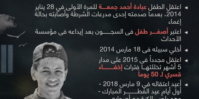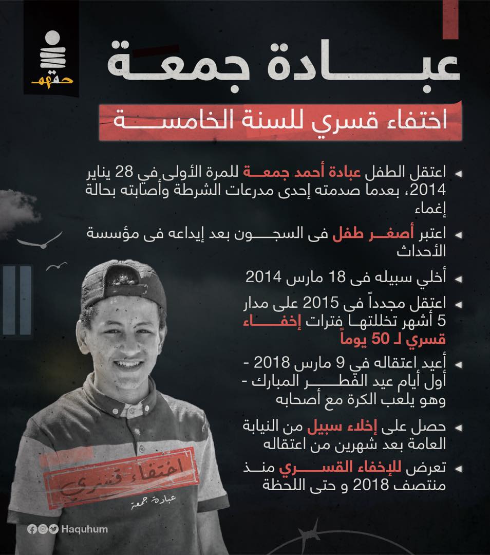 فيما تواصل قوات الانقلاب جريمة الإخفاء القسري لـ "عبادة أحمد جمعة" منذ اعتقاله تعسفيا للمرة الثالثة يوم 9 مارس 2018 من الشارع في زهراء مدينة نصر حيث ترفض الكشف عن مكان احتجازه دون سند من القانون ليظل مصيره مجهول حتى الآن وسط مخاوف على سلامته.